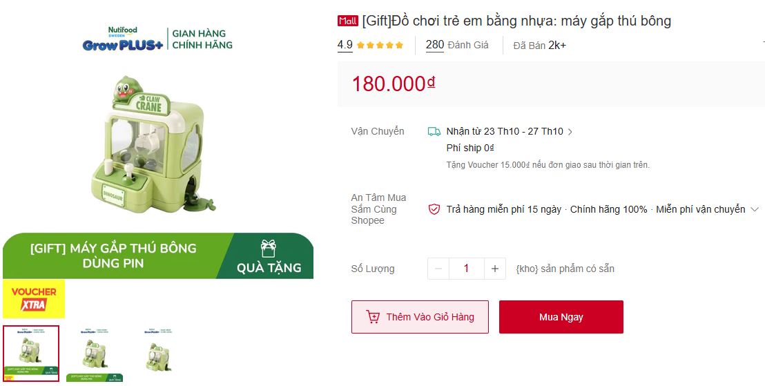 Tính năng: Gắp thú bằng tay, có đèn và âm thanh