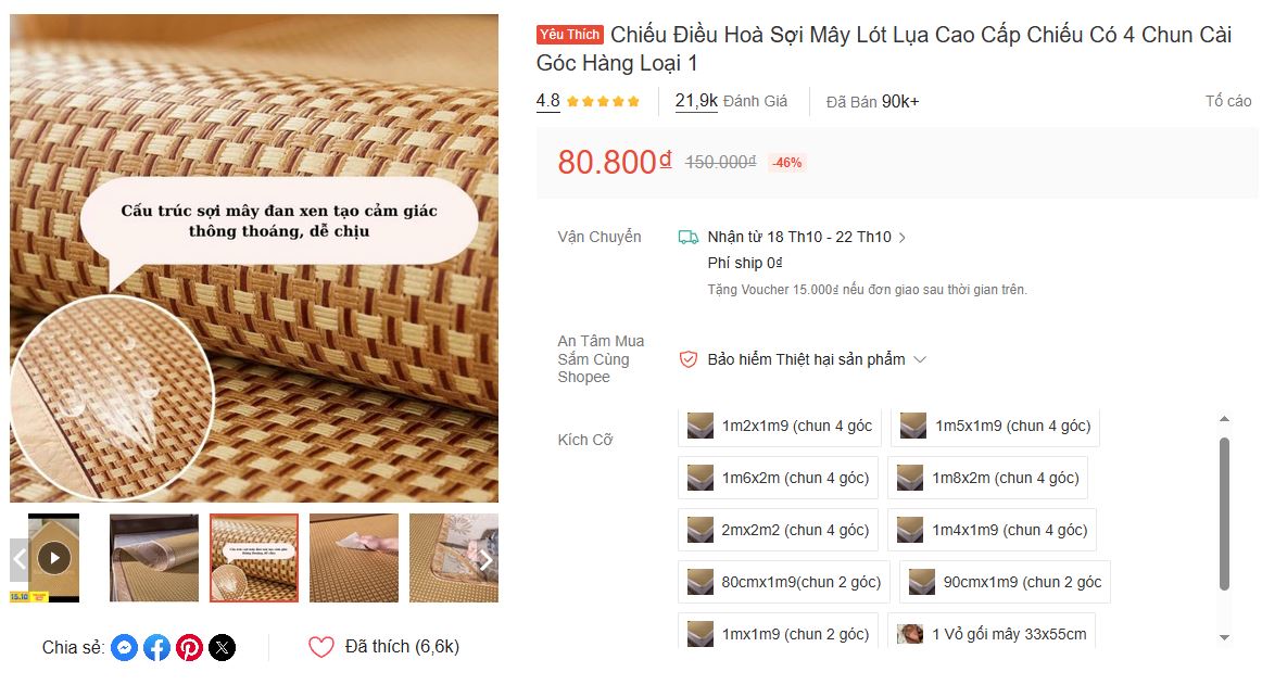 Chiếu điều hoà sợi mây lót lụa cao cấp là lựa chọn lý tưởng cho mùa hè oi bức. Được làm từ sợi mây tổng hợp cao cấp, đan dày và chắc chắn, sản phẩm mang lại cảm giác mát lạnh, dễ chịu ngay từ lần đầu sử dụng.