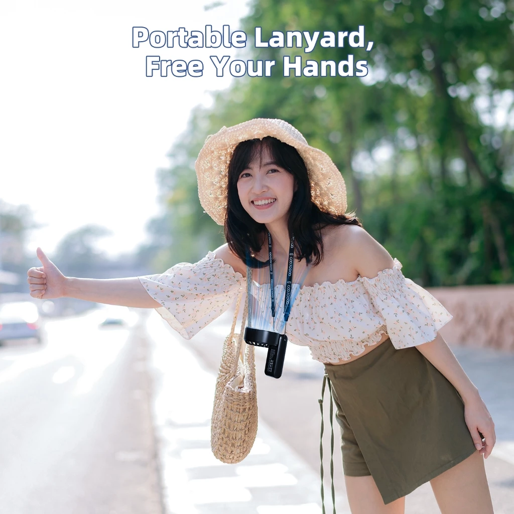 Quạt được trang bị 2 lỗ dây đeo linh hoạt, có thể đeo trước ngực hoặc cầm tay tùy ý.