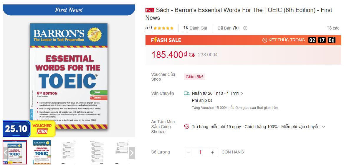 Các Từ Vựng Cần Thiết Để Thi TOEIC “Essential Words for the TOEIC – 6th Edition” là cuốn sách được cập nhật mới nhất nhằm cung cấp những từ vựng cần thiết để luyện thi TOEIC – kỳ thi Trắc Nghiệm Tiếng Anh Trong Giao Tiếp Quốc Tế (Test of English for International Communication). Kỳ thi này đánh giá trình độ tiếng Anh của những người làm việc trong lĩnh vực kinh doanh quốc tế, hoặc những người học tiếng Anh với mục đích giao tiếp. Đây là ấn bản mới nhất (xuất bản lần thứ 4 tại Việt Nam) được cập nhật từ những bài thi gần đây nhất của viện giáo dục khảo thí Hoa Kỳ (Educational Testing Service), bao gồm 50 bài học về cách xây dựng vốn từ vựng trong tiếng Anh.