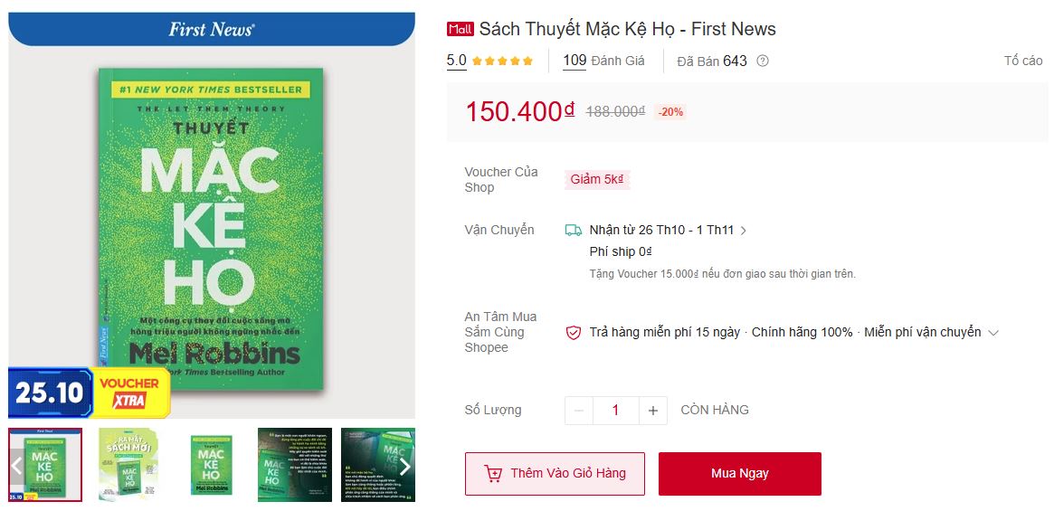 Trong quyển sách mới nhất của mình, Thuyết Mặc Kệ Họ, Mel Robbins – tác giả sách bán chạy và chuyên gia nổi tiếng về tư duy, động lực và thay đổi hành vi – chia sẻ với độc giả cách để ngừng lãng phí năng lượng vào những điều bạn không thể kiểm soát và tập trung vào đối tượng thật sự quan trọng: bạn, hạnh phúc của bạn, mục tiêu của bạn, cuộc sống của bạn.