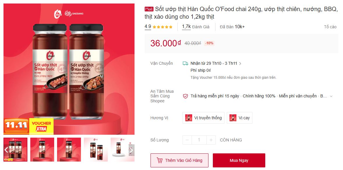 sốt ướp thịt Hàn Quốc, sốt O’Food 240g, sốt BBQ Hàn, gia vị ướp thịt nướng, sốt ướp thịt gochujang, sốt nướng O’Food, Thao Reviews sốt O’Food.