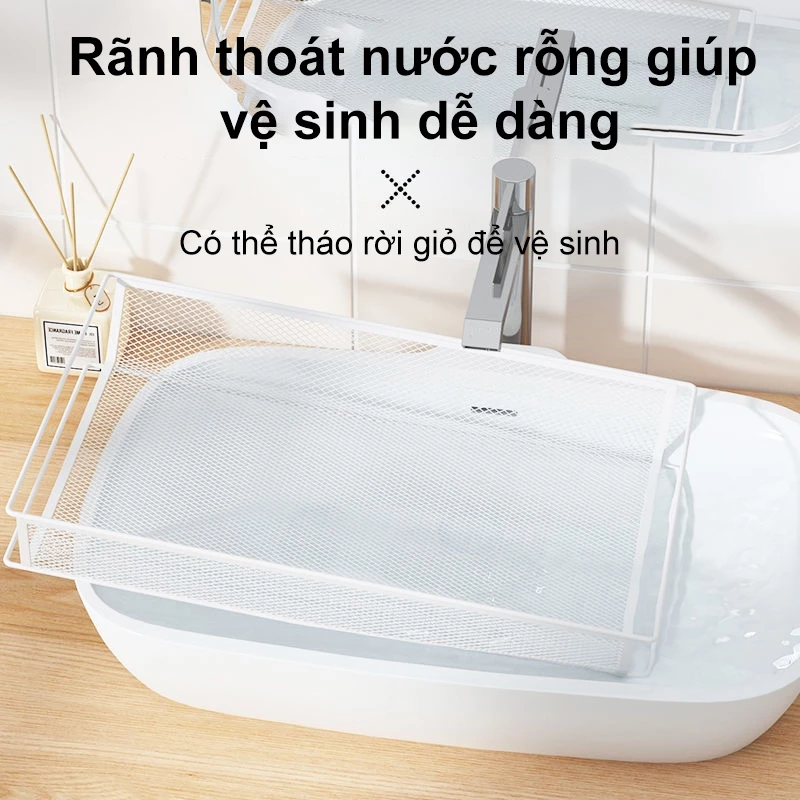 Giỏ lưới thoáng khí, dễ vệ sinh, thoát nước nhanh, tránh hư hỏng rau củ.