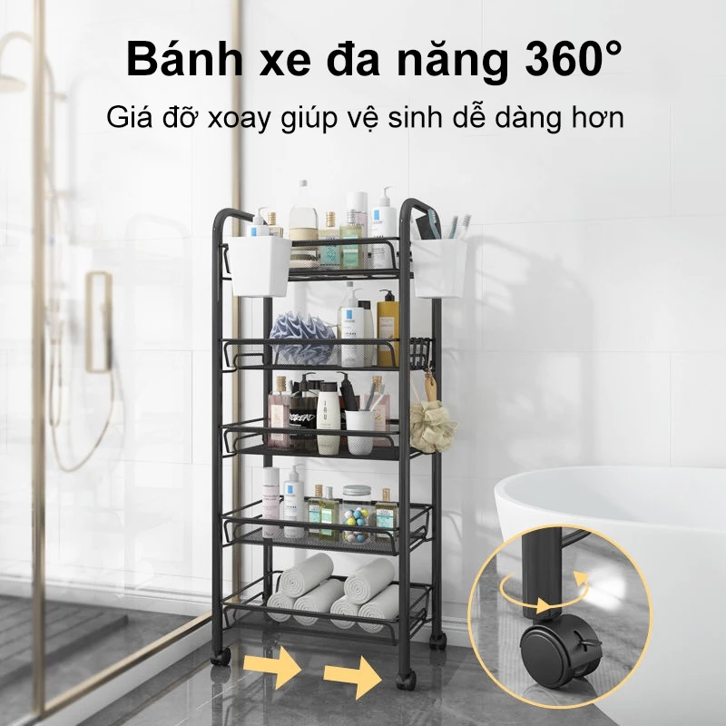 Bánh xe xoay 360°, di chuyển linh hoạt, vệ sinh dễ dàng.
