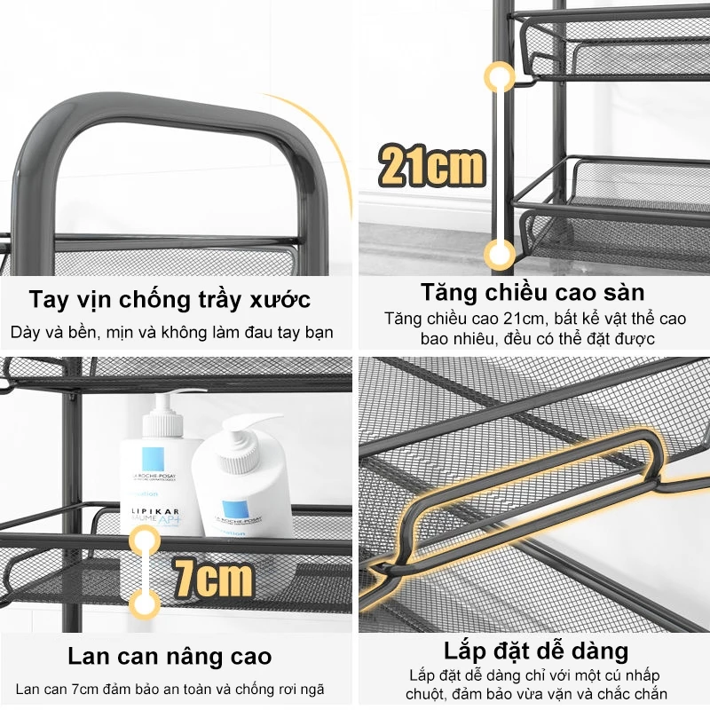Đựng được rau củ, trái cây, đồ dùng nhà bếp, lắp đặt nhanh chóng.